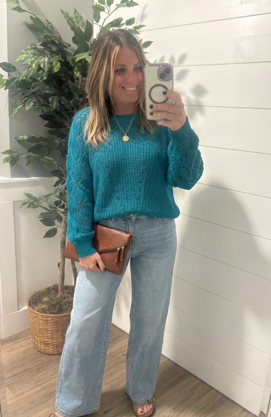 Teal Tide Textured Sweater - Teal