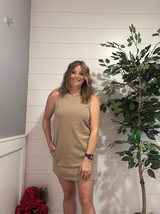 Pigment Dyed Sleeveless Mini Dress - Ash Mocha
