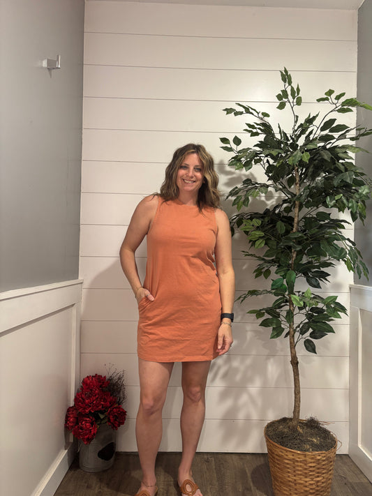 Pigment Dyed Sleeveless Mini Dress - Baked Clay