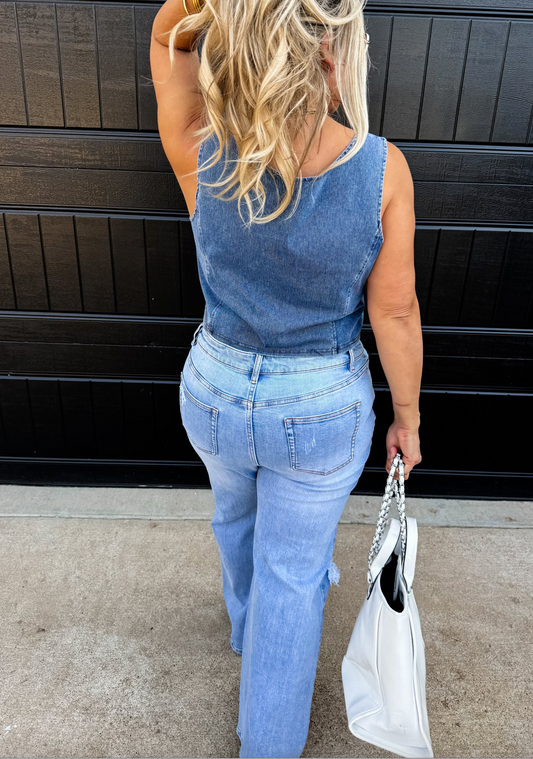 Risen Mid Rise Wide Leg Jeans Light Wash