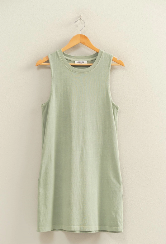 Pigment Dyed Sleeveless Mini Dress - Sage Green
