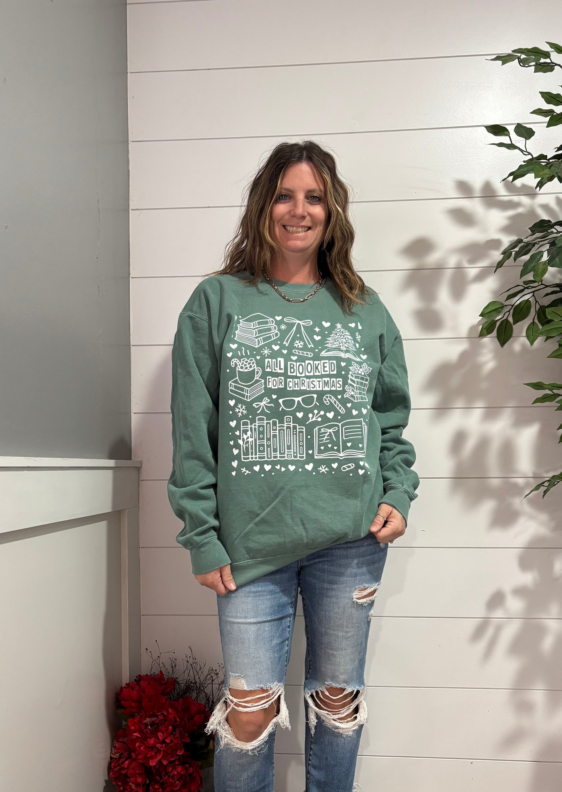 Settle in with a good read wearing the "All Booked for Christmas" Sweatshirt, designed for ultimate comfort during the holiday season. This versatile piece pairs effortlessly with vests or shackets for layered styling that works from casual gatherings to relaxed evenings at home.