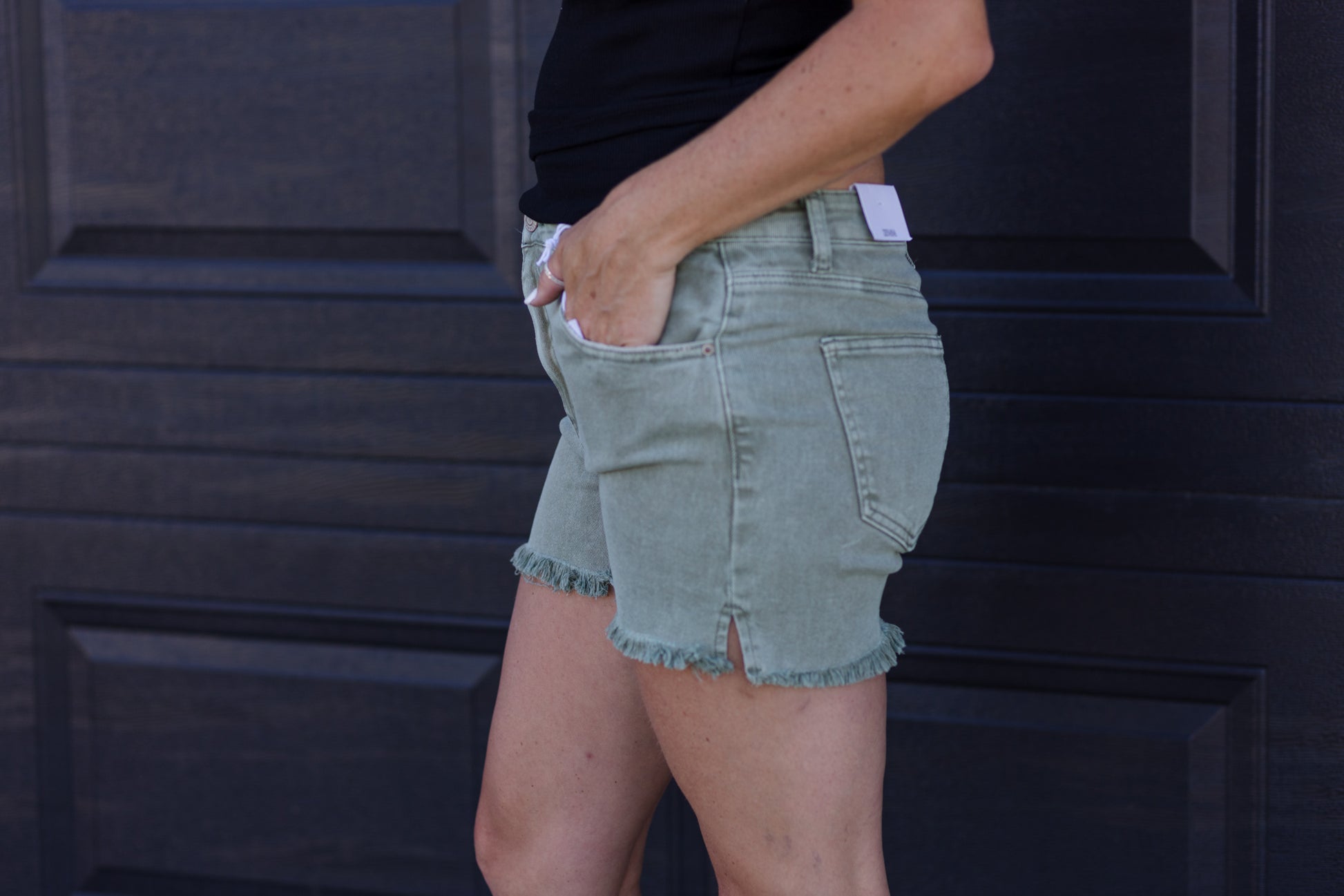 ACID WASHED FRAYED CUTOFF HEM SHORTS