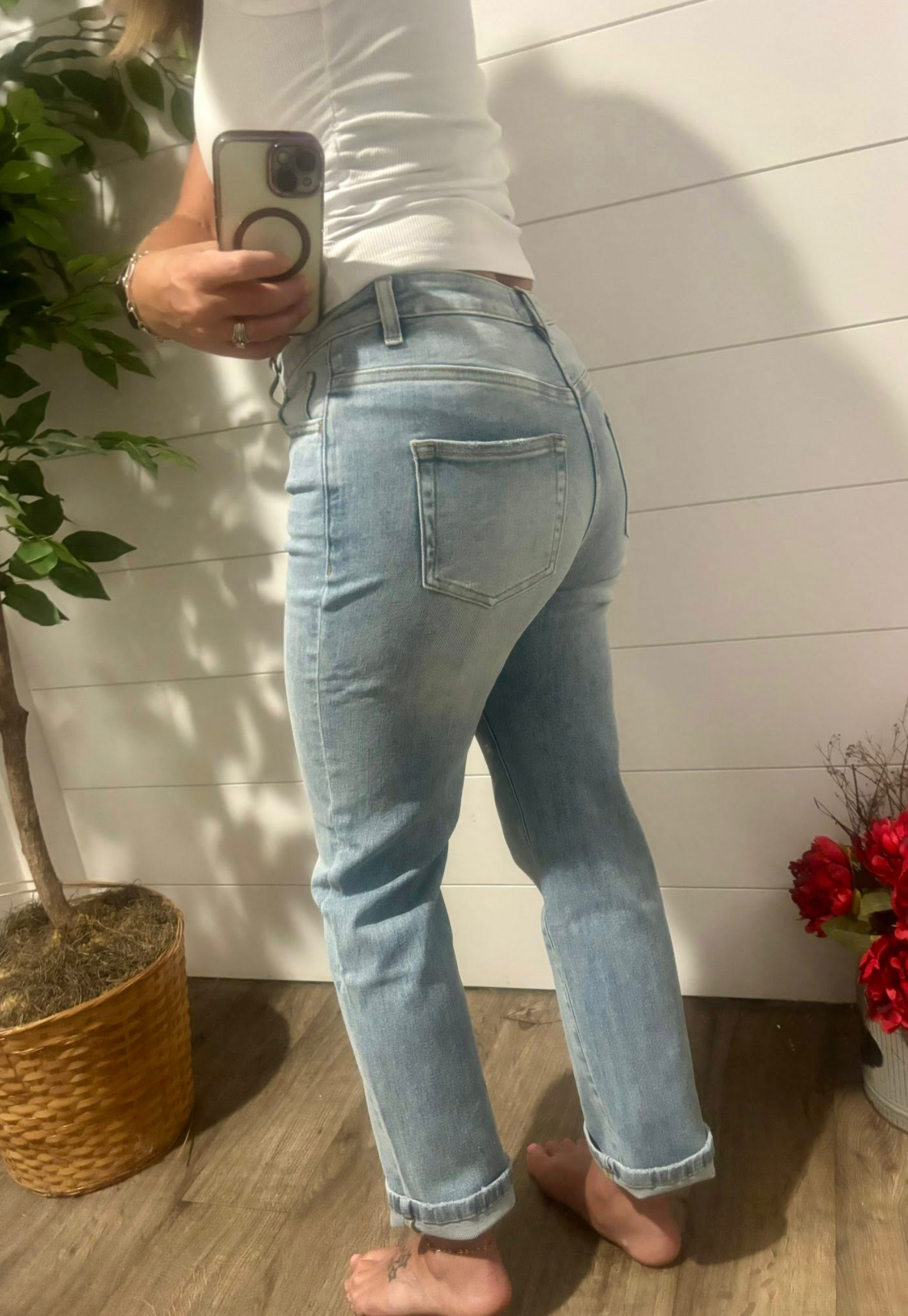 We are SO excited to launch these stretchy AMAZING fit jeans! The PERFECT fit for a classic look denim. No distressing and cuffs can be rolled if desired. Stretch and fit is perfection! Great for Summer or Fall paired with sandals, wedges or boots!